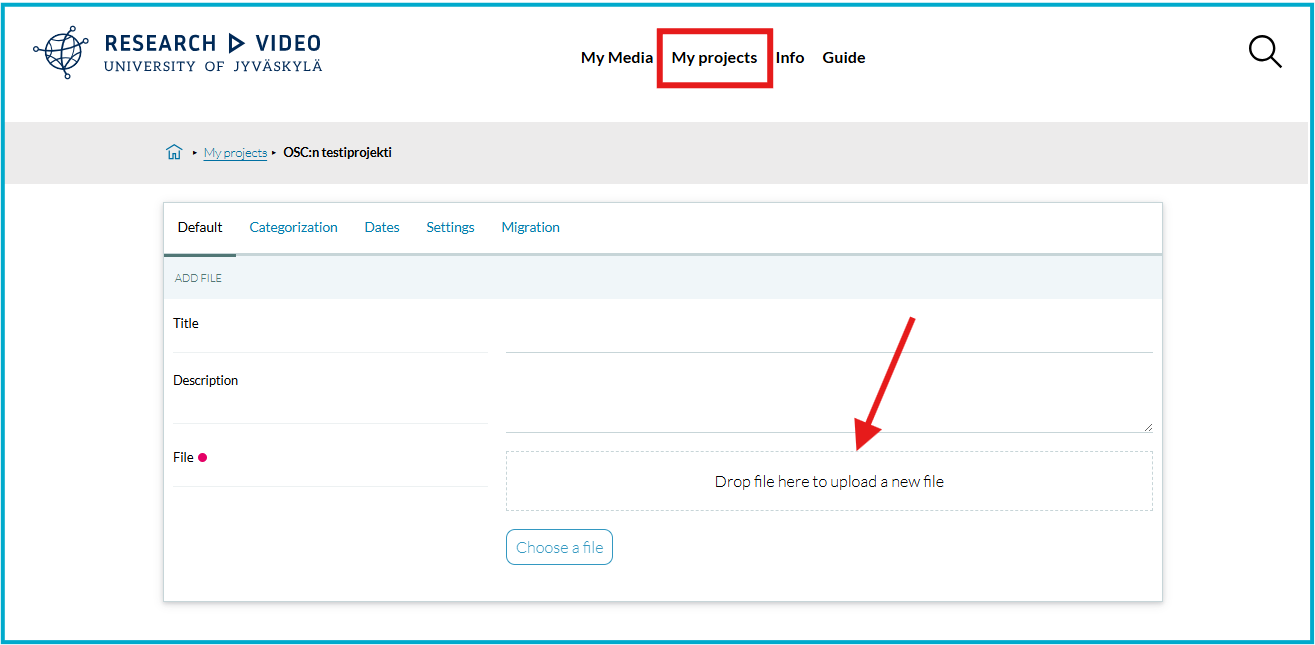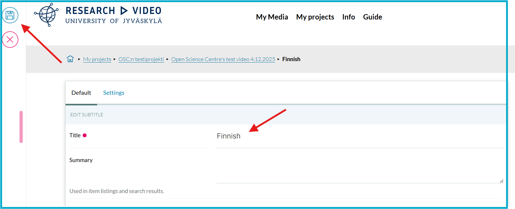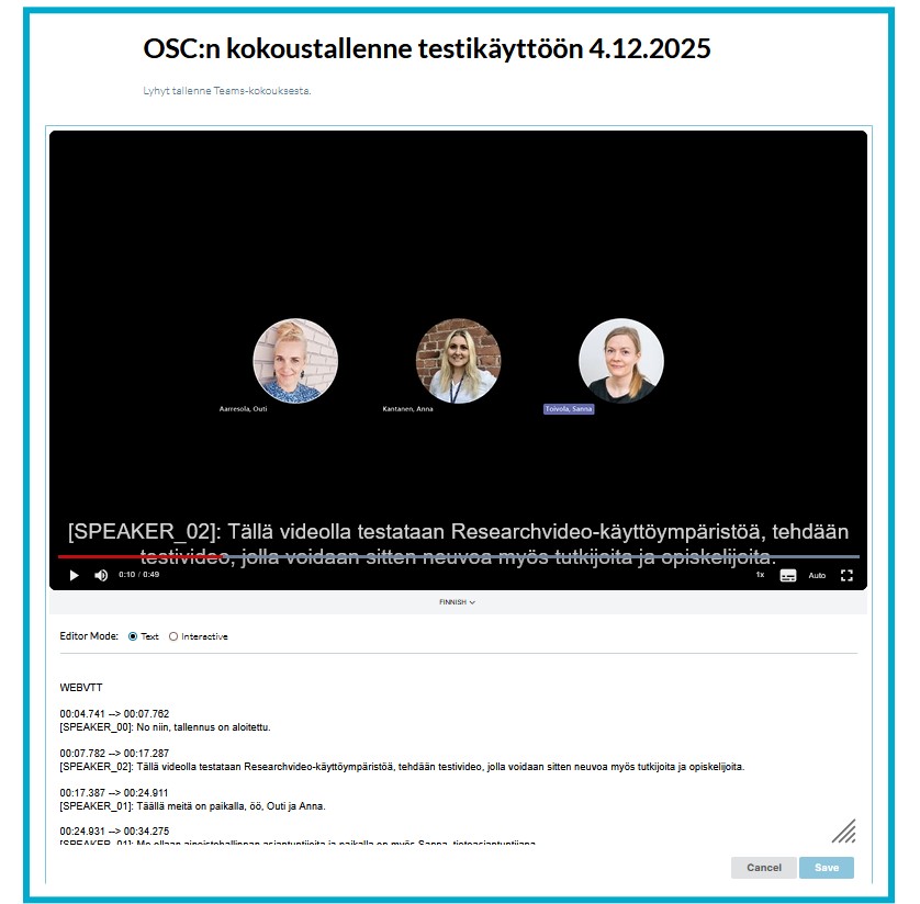 Example video of uploading a video and editing media page in Researchvideo (in Finnish).