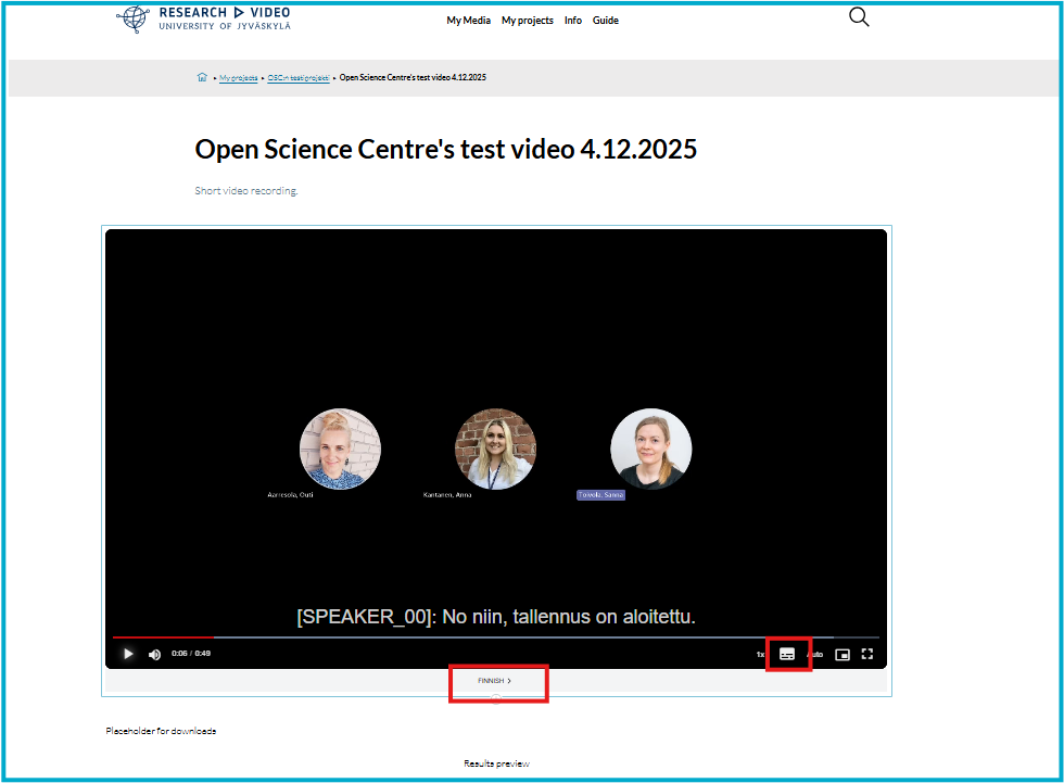 Although Researchvideo enables creation of automated transcriptions/subtitles, the transcriptions' quality should always be checked afterwards. There are usually some errors in how well the text corresponds to what is said on the recordings. More information on the Whisper AI language model used in Researchvideo.