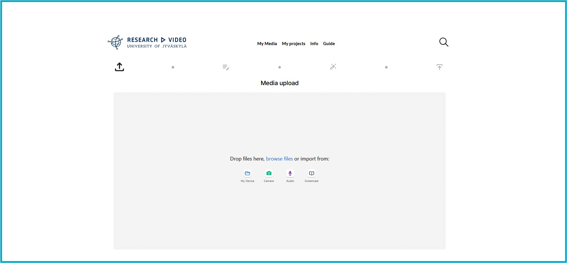 After getting access to your new research project, you may add new media pages. Please note that when uploading files, do not use a VPN connection, as it slows down the upload.